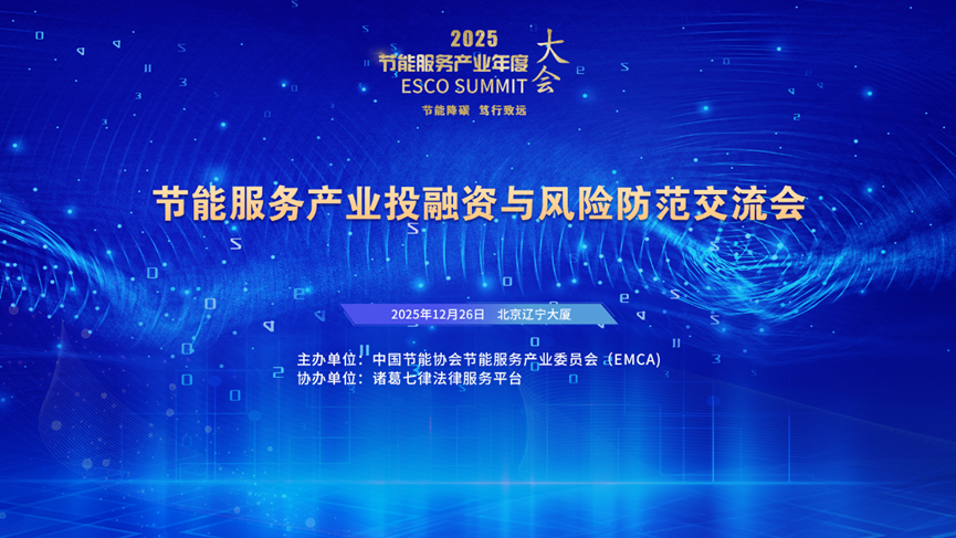 12月26日,由中国节能协会节能服务产业委员会(EMCA)主办、诸葛七律法律服务平台协办的“节能服务产业投融资与风险防范交流会”在京成功举办。节能服务公司代表与金融、法律等第三方服务机构人士齐聚本次交流会,线上+线下参会总人数近 3000 人。