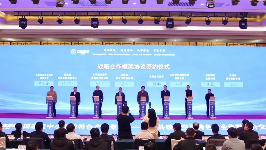 本次活动以“武城暖通 制造精品 进军绿色 节能未来”为主题,汇集24家武城本土优质暖通空调企业和中国节能协会、北京武城商会、天津武城商会多家会员企业,共同展示该产业集群的创新实力与绿色愿景。会上,武城县委书记王峰以《携手武城暖通 共赴节能未来》为题,向全国业界发出诚挚邀约。