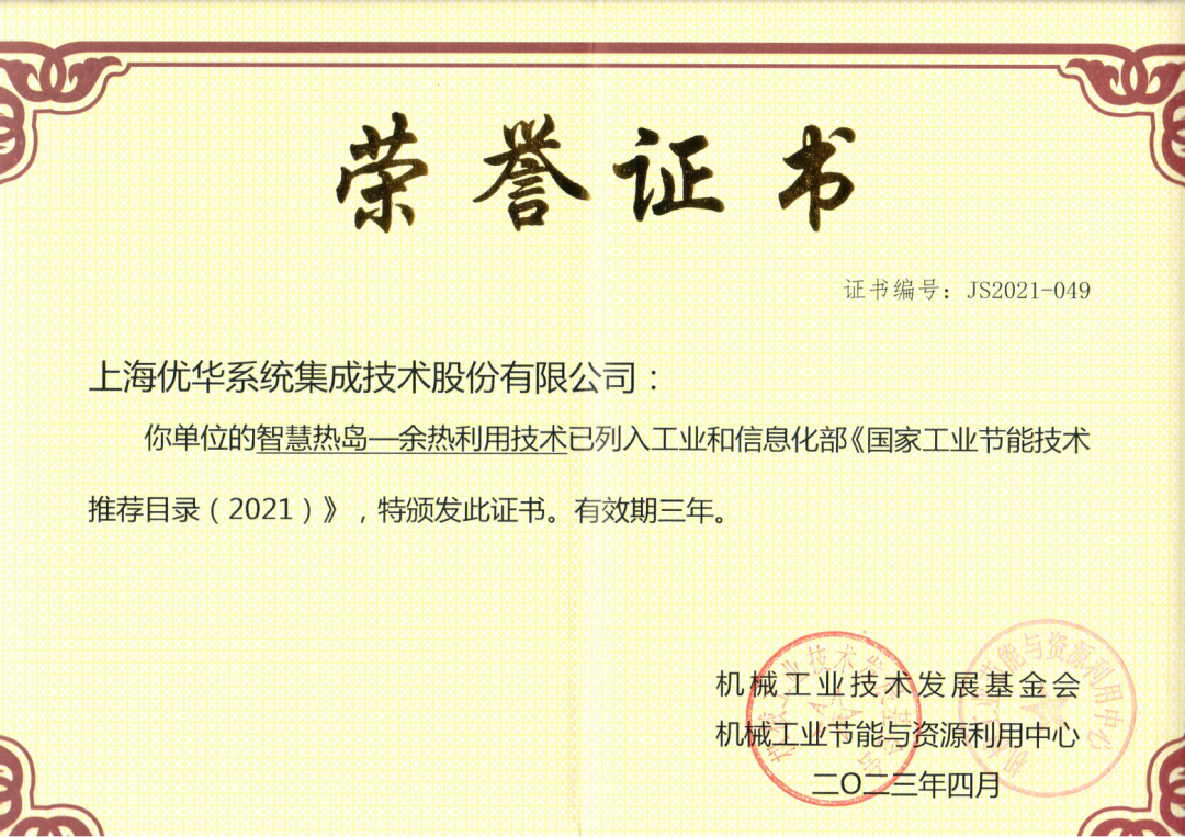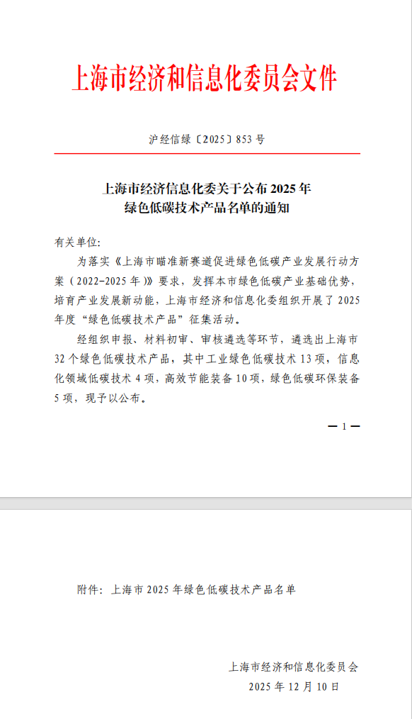 近日,上海市经济和信息化委员会正式印发《上海市经济信息化委关于公布 2025 年绿色低碳技术产品名单的通知》(沪经信绿〔2025〕853 号),上海优华系统集成技术股份有限公司自主研发的智慧热岛®余热回收利用系统凭借突出的绿色低碳技术优势,成功入选工业绿色低碳技术类别,成为上海市重点培育的绿色低碳产业创新成果之一。